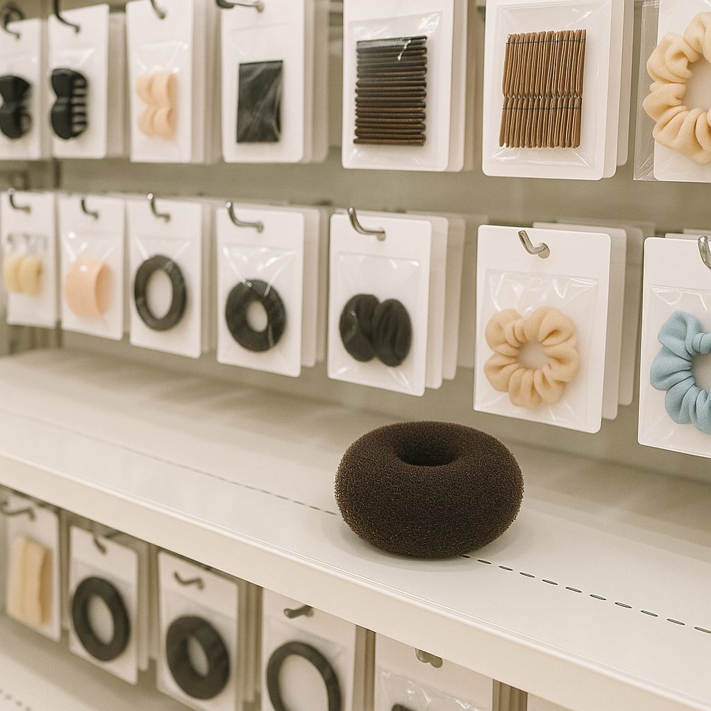 売り場は「ヘアピンやゴムなどのヘアアレンジ用品コーナー」にあることが多く、見つからない場合は店員さんに聞いてみるのが確実です。